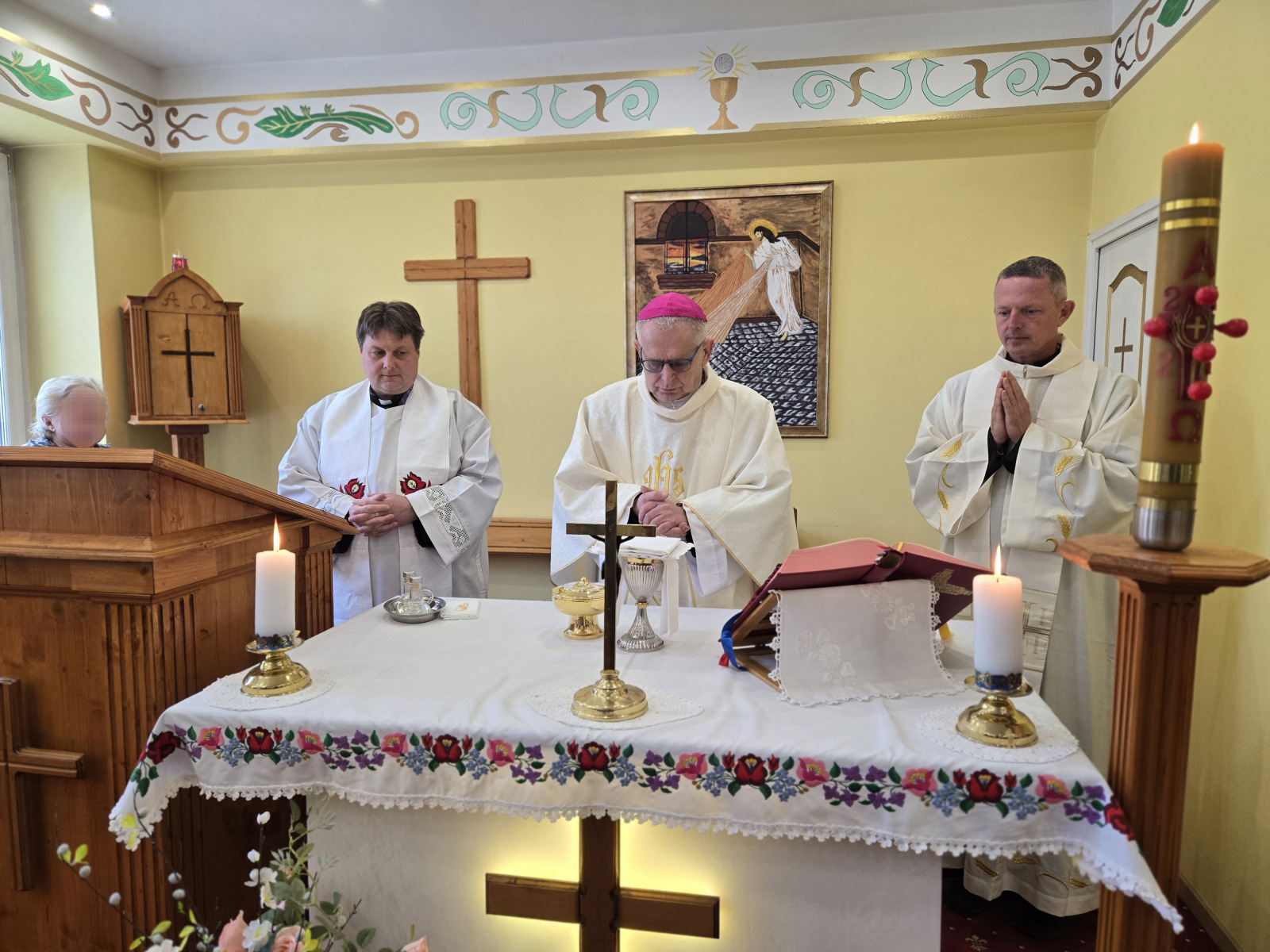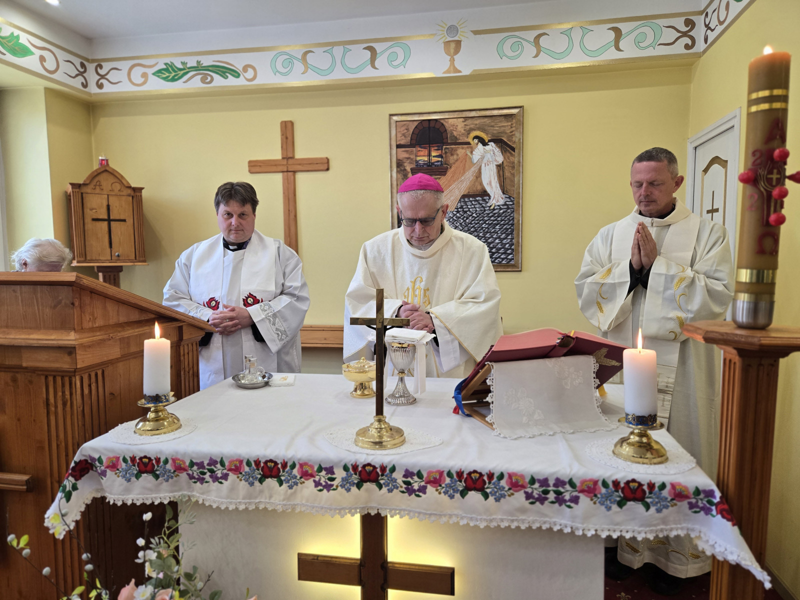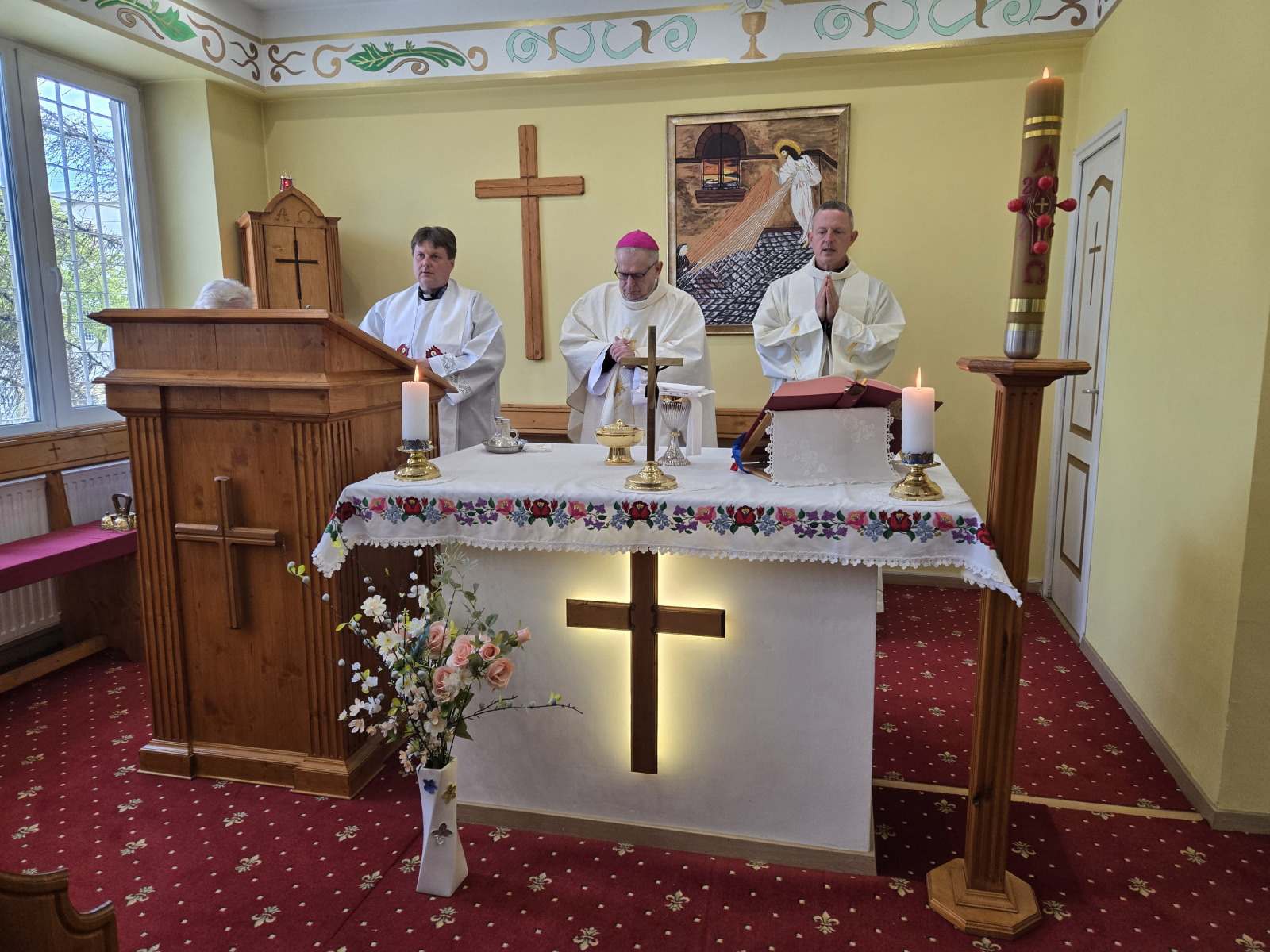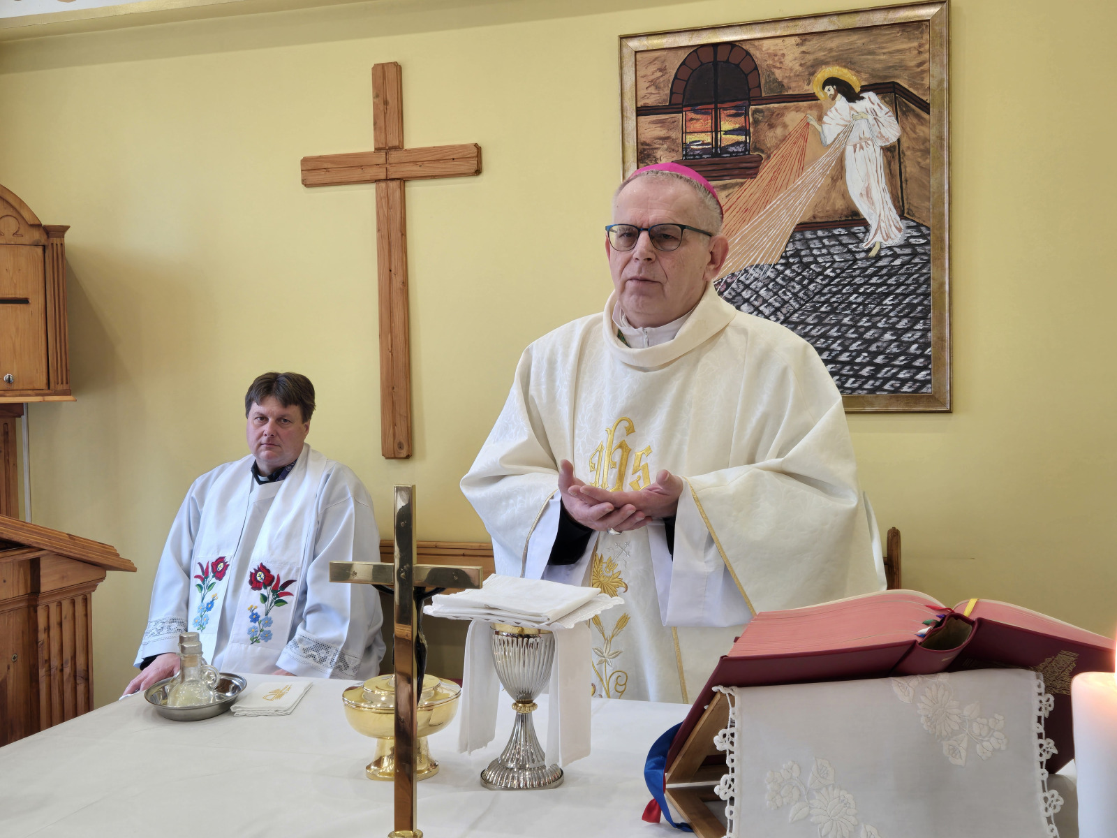 A szentmisén az Apostolok Cselekedeteiből, Szent Péter első leveléből és a Szent János evangéliumából hangzottak el olvasmányok. A főpásztor mellett koncelebrált Gál József római katolikus pap, a Kiskunhalasi Országos Büntetés-végrehajtási Intézet 2019 óta szolgáló börtönlelkésze, valamint Stift Zoltán áldozópap, a Katolikus Börtönlelkészi Szolgálat országos koordinátora.