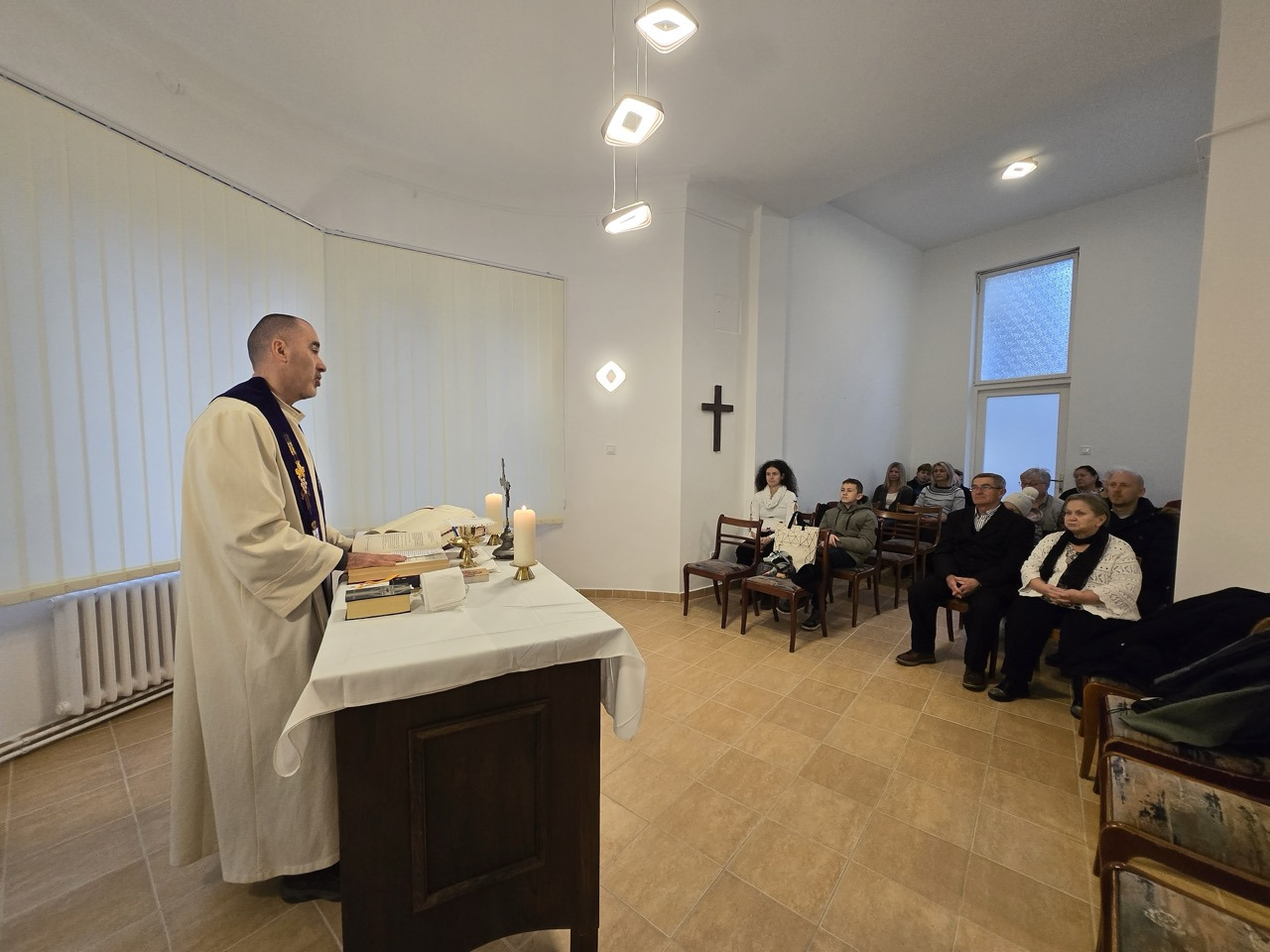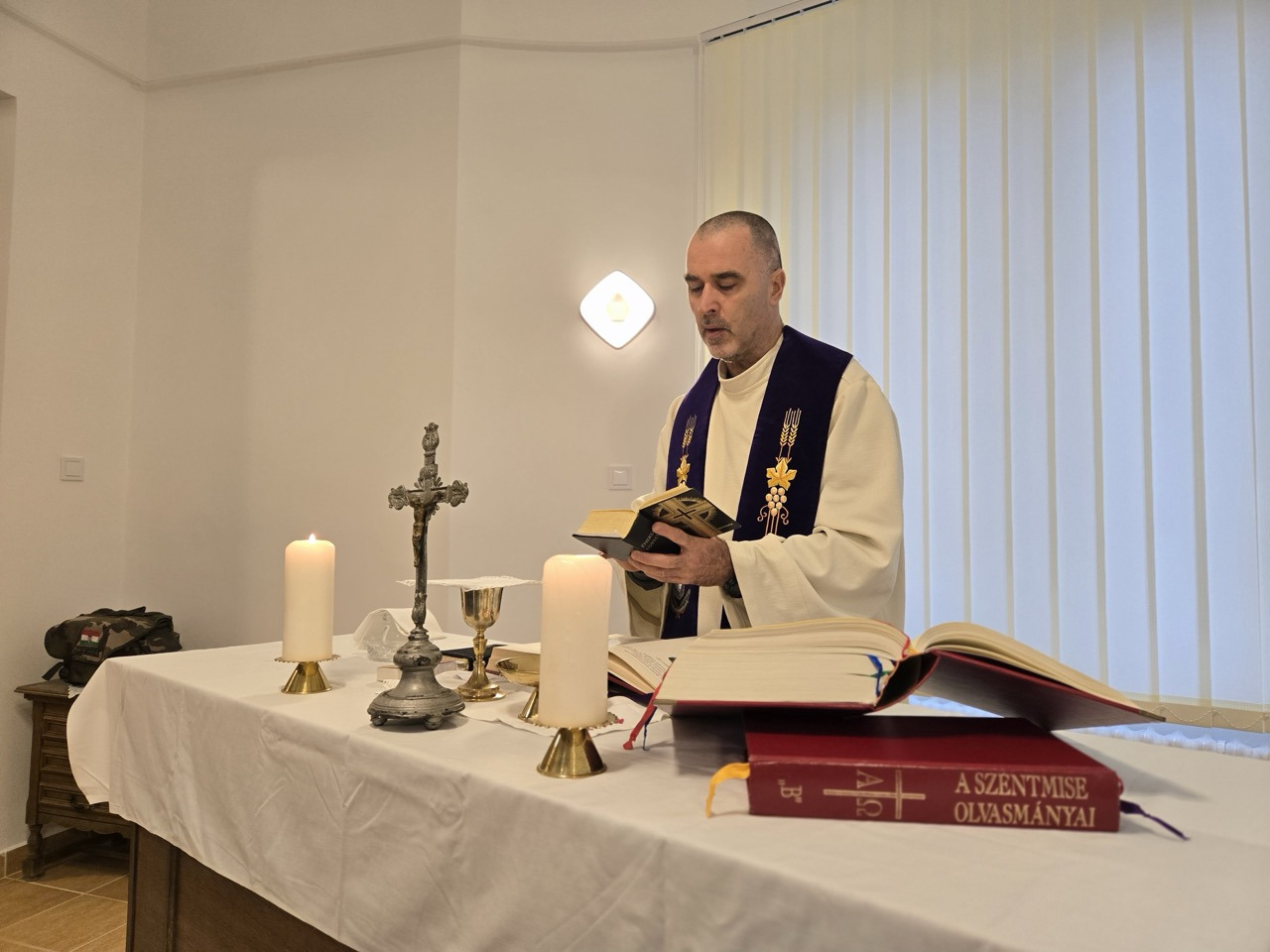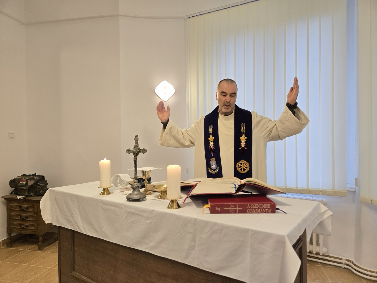 Takács Tamás ezredes, a Katolikus Tábori Lelkészi Kar vezetője december 21-én, advent utolsó vasárnapján szentmisét mutatott be celebrált Balatonakarattyán, a Magyar Honvédség Rekreációs Kiképzési és Konferencia Központjának nemrégiben felújított imatermében.