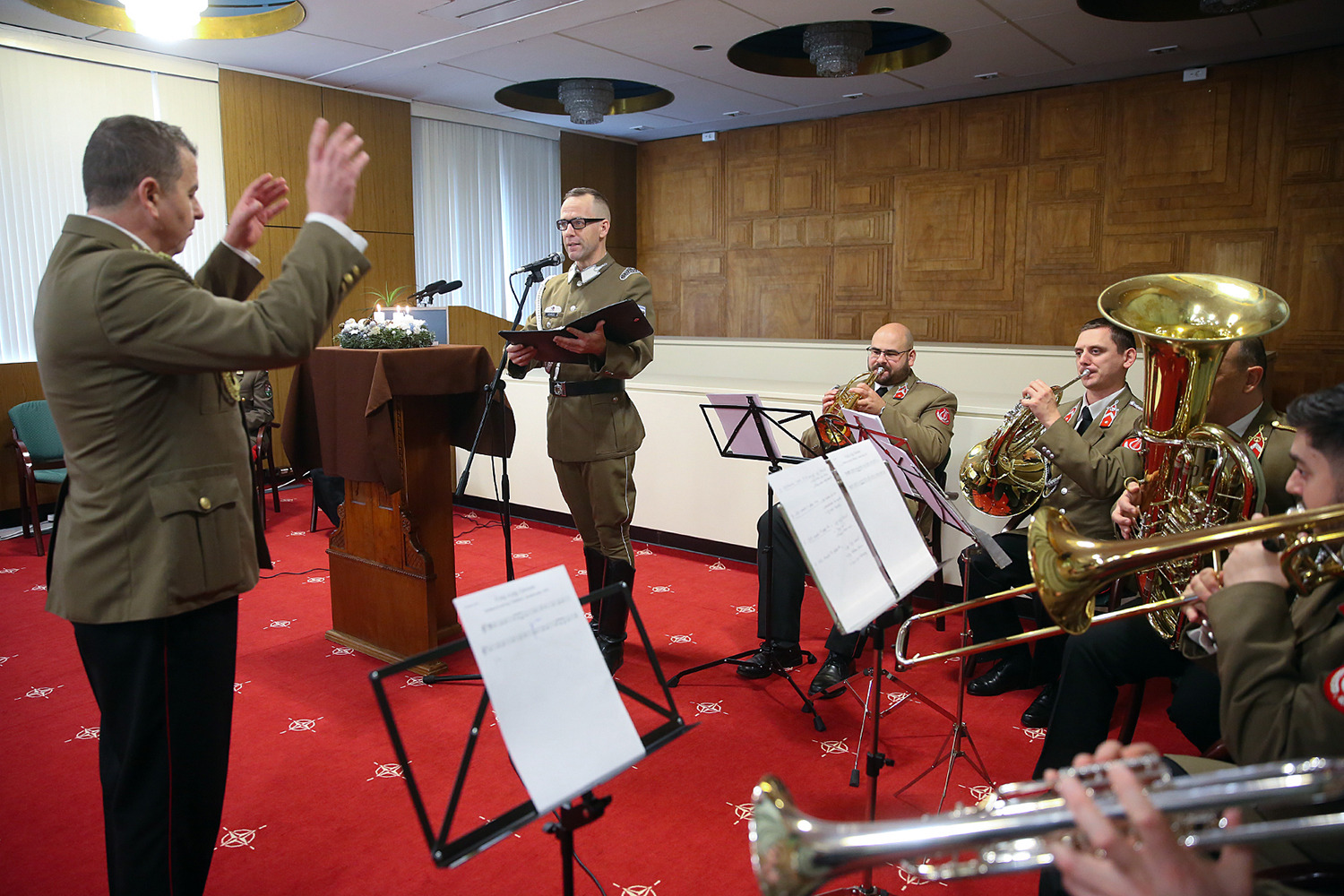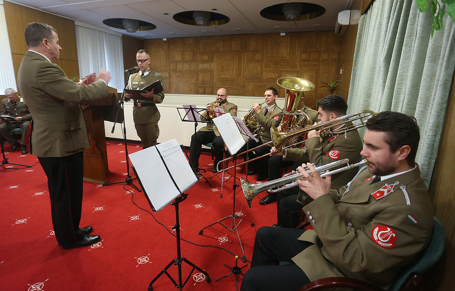 Az áhítaton – melyen részt vett mások mellett Kurtán Krisztina, a HM gazdálkodási ügyekért felelős helyettes államtitkára, Hajnik László, a HM védelempolitikáért felelős helyettes államtitkára, Udvardi Endre, a HM jogi és igazgatási ügyekért felelős helyettes államtitkára és Bozó Tibor altábornagy is – a zenét a Magyar Honvédség Központi Zenekarának rézfúvós kvintettje szolgáltatta.