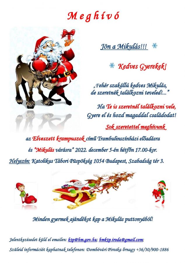 Az ünnepségen való részvételhez kérjük, küldjék meg a résztvevő gyermek nevét, születési idejét valamint a gyermekkel érkező felnött kísérők számát az alábbi e-mail címek egyikére: ktp@hm.gov.hu vagy hmktp.iroda@gmail.com