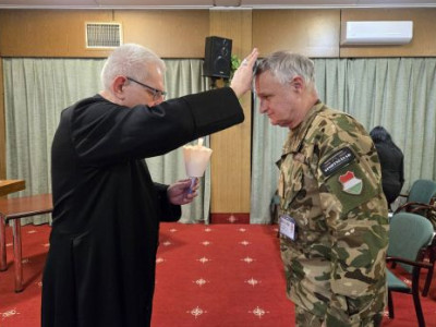 10.30 KATONAI TISZTELETADÁSSAL BEMUTATOTT ÜNNEPI SZENTMISE, melyet Berta Tibor dandártábornok, tábori püspök, katonai ordinárius celebrál a katonalelkészek közösségével.